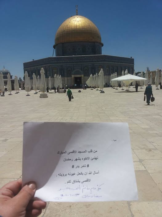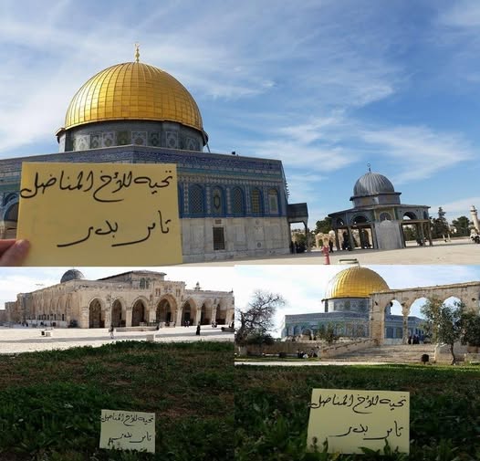 6 مارس 2015 أشكر الأخت الفلسطينية الكريمة التي تكرمت وصورت صورتي داخل المسجد الأقصى تقريبا هذه أول مرة أجد من يصور ورقه بها صورة شخصية