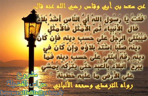 27 مايو 2013  لا تحزنوا من بلائكمفقد قال رسول الله صلي الله عليه وسلمإنّ عِظَمَ الجَزَاءِ معَ عِظَمِ البلاء ، وإنّ الله إذا أحبّ قوما